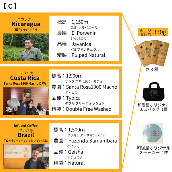 ・コーヒー豆 3種類(各110g × 3種=約330g)